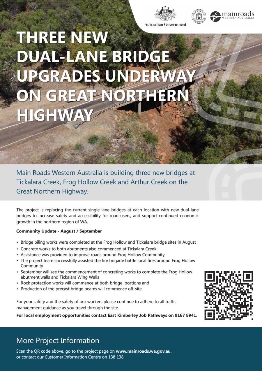 No Crumbs Communications provided community and stakeholder engagement services for Main Roads WA’s Kimberley Bridge project located in the East Kimberley region of Western Australia.